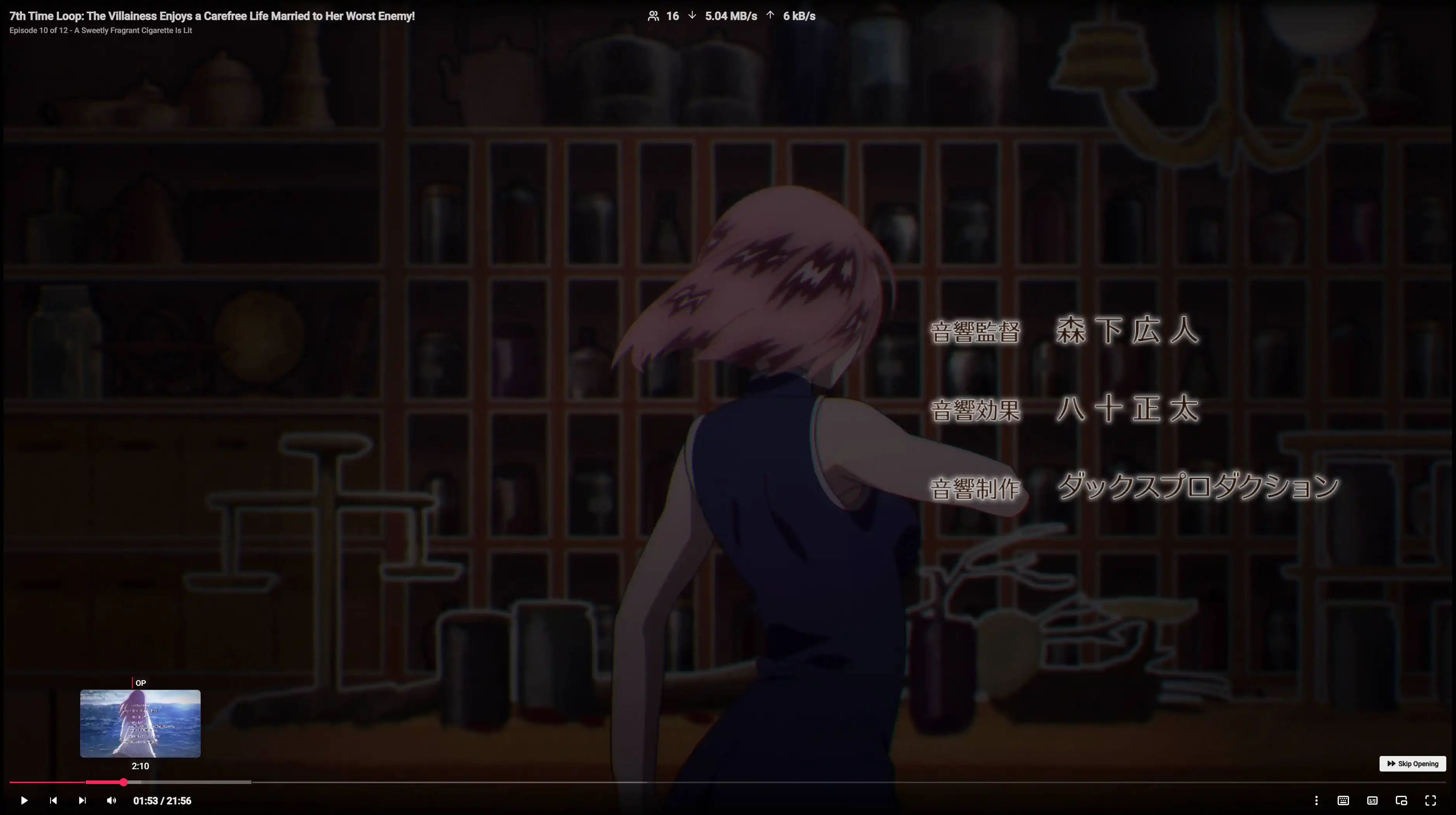 - Chapter-aware seekbar with progress indicators, watched episode highlights, and skippable sections (OP, ED, intro, credits, recap, filler)